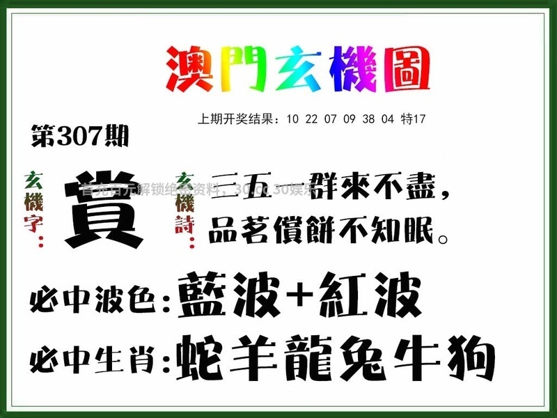 307期:发财七肖【牛猴龙兔虎羊】开:狗20准